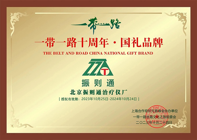 2023年10月24日,北京振则通治疗仪厂生产的振则通声波治疗仪在“一带一路国礼品牌评选活动”中脱颖而出,荣获一带一路国礼品牌。这是对振则通声波治疗仪的认可,更是对中医文化的肯定和传播。