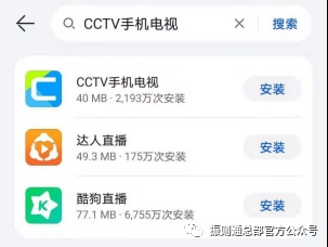 1、在手机自带的应用市场里搜索CCTV手机电视,并下载;