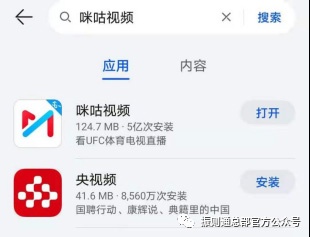 1、在手机自带的应用市场里搜索咪咕视频,并下载